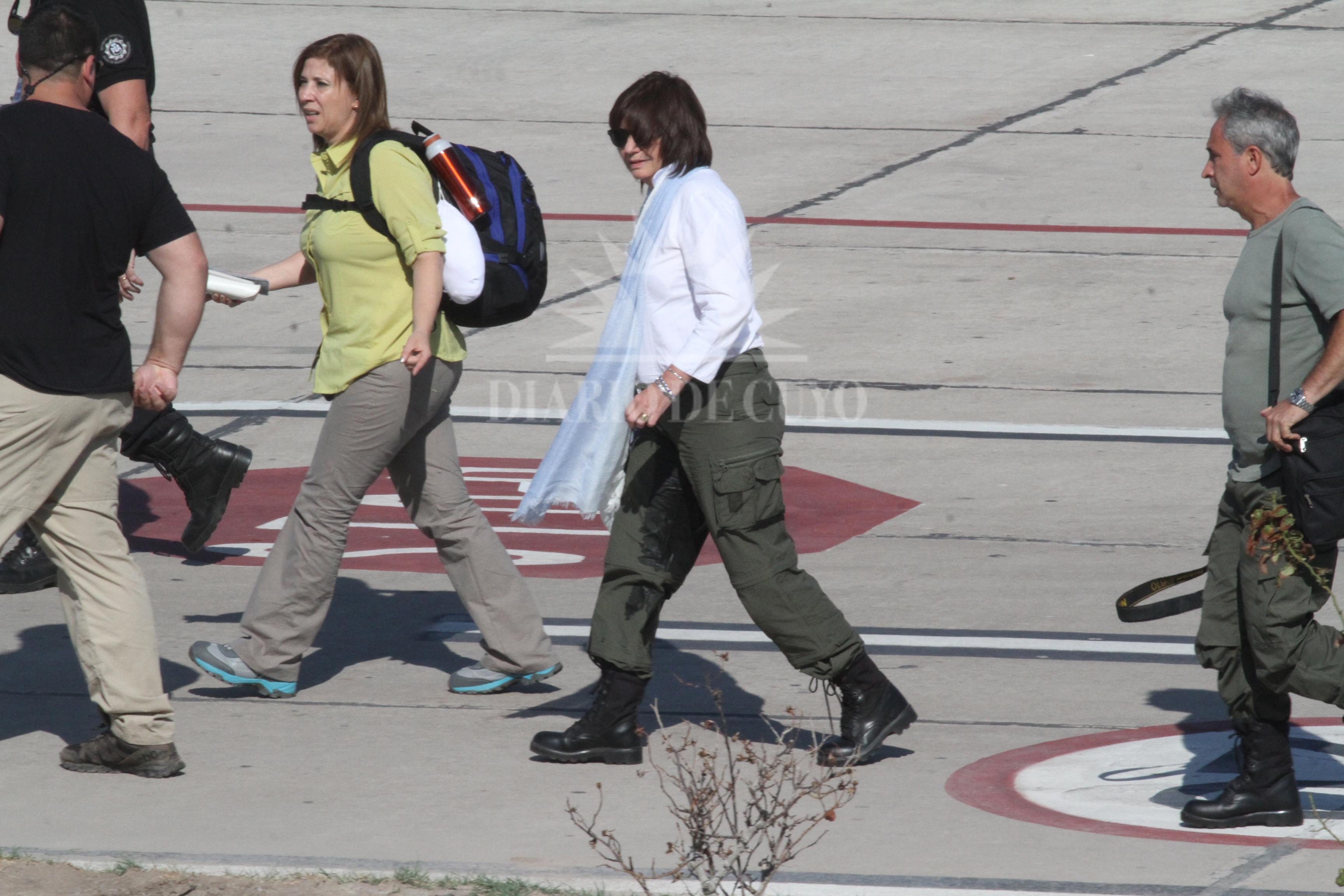 La visita de la ministra de Seguridad Patricia Bullrich dejó dos imágenes poco más que curiosas. Trascendieron fotos del momento en que la funcionaria nacional arribó al aeropuerto Domingo Faustino Sarmiento el último miércoles en la tarde, para luego hacerse parte del Cruce.