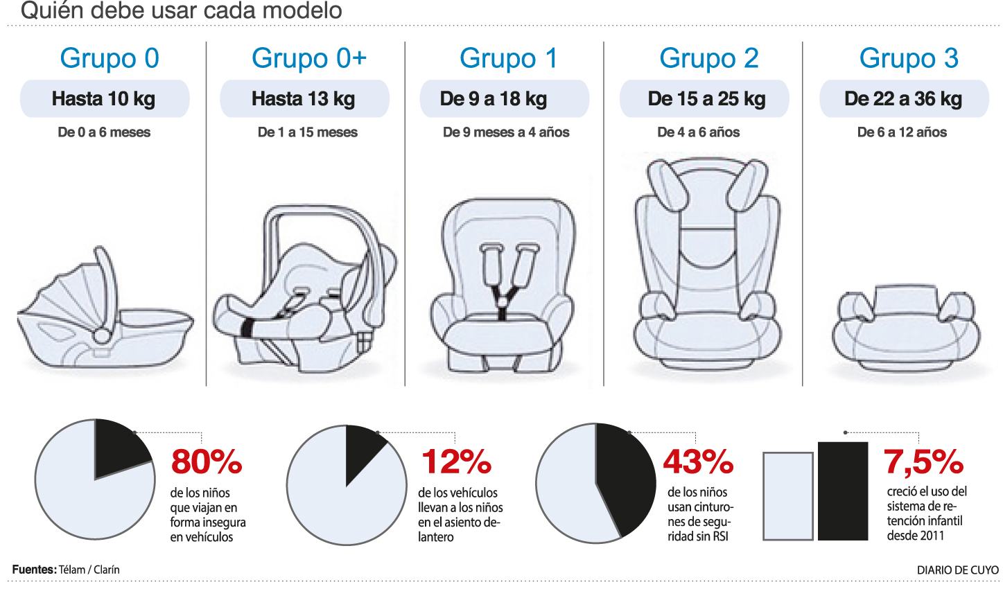 A excepción de Mendoza, Córdoba, Capital Federal y Santa Fe, que tienen legislación propia al respecto, el Gobierno decretó que todos los chicos de hasta diez años deberán viajar en el asiento trasero del auto con sillitas infantiles. Esta medida entró en vigencia a partir de la publicación en el Boletín Oficial el 11 de enero pasado.