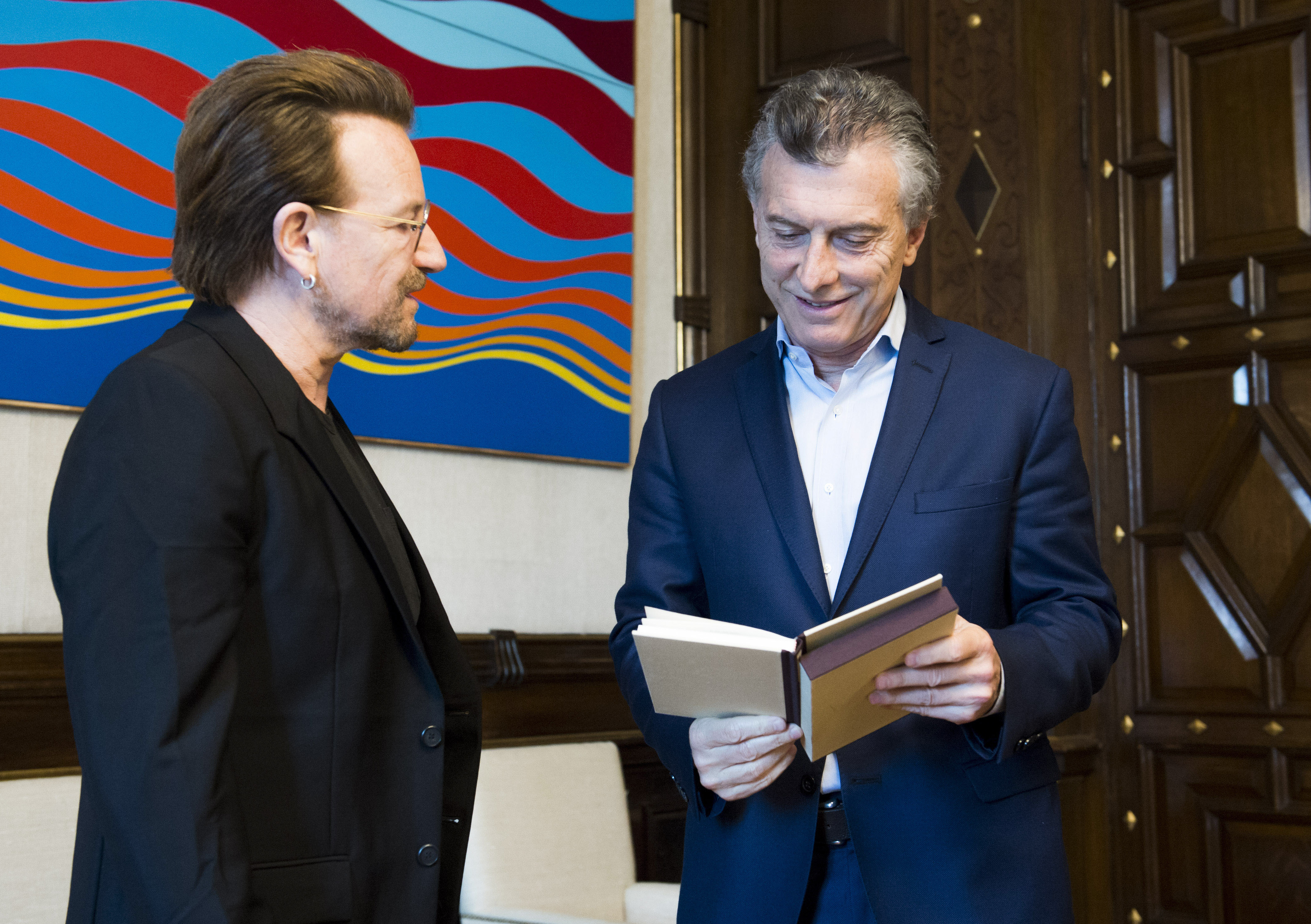 "Bono, habló con el presidente (Mauricio) Macri sobre Santiago Maldonado" y "le manifestó su preocupación por este tema durante la audiencia que mantuvieron en la Casa Rosada".