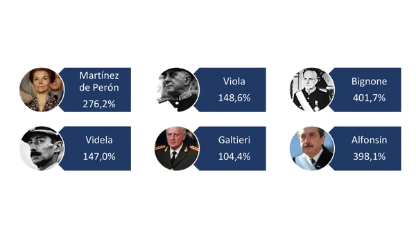 El presidente que registró una mayor inflación anualizada durante el período fue Reynaldo Bignone con un 401,7%.