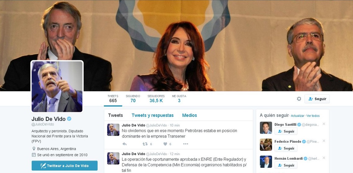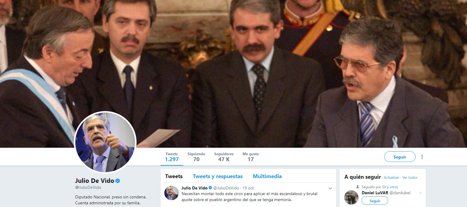 En las últimas horas, la cuenta de Twitter de De Vido, ahora manejada por su familia, realizó un sugerente cambio de portada, haciendo desaparecer la imagen de Cristina.