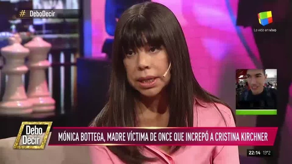 Mónica Bottega es madre de Tatiana Pontiroli, una de las 52 víctimas de la tragedia de Once. El viernes pasado fue a la Parroquia Nuestra Señora de la Merced, donde se encontró a Cristina Kirchner, a quien llamó "asesina". Fue en una misa celebrada en Merlo en la que se reclamó por la aparición con vida de Santiago Maldonado.