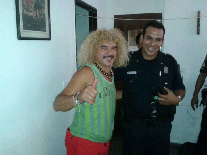 Esteban Ramírez con un imitador del Pibe Valderrama
