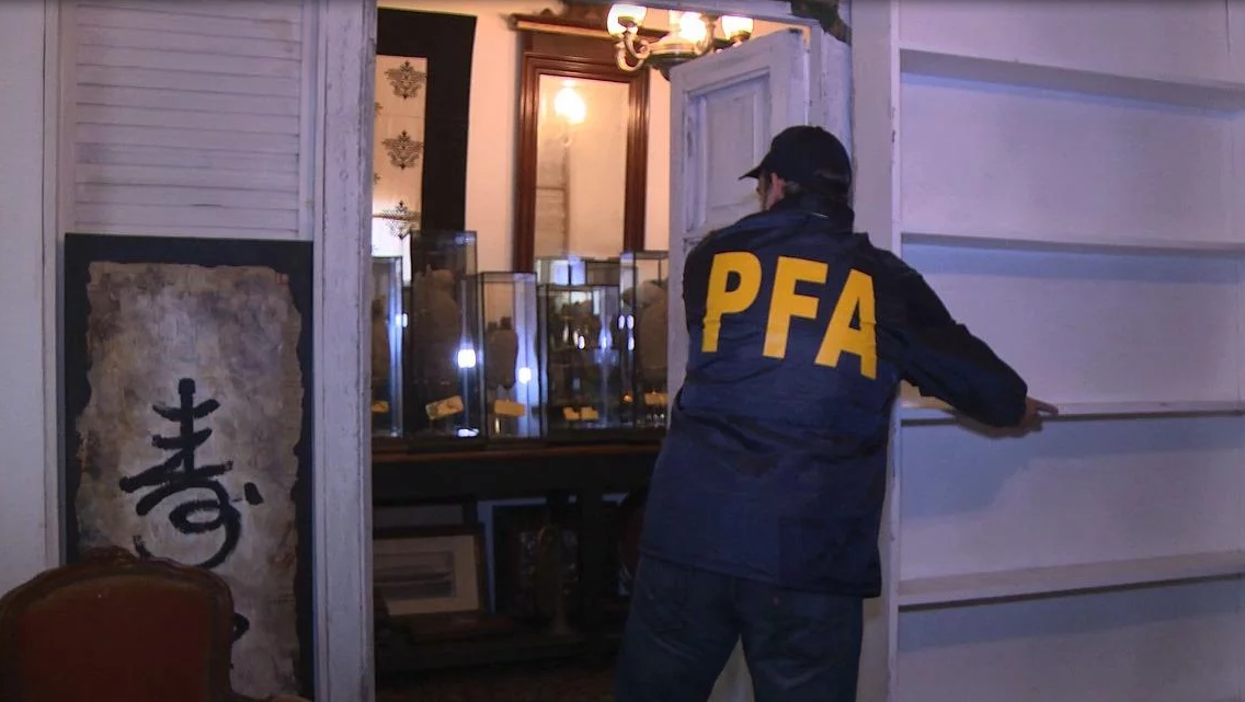 En junio de 2018, siguiendo las pistas de una investigación que ya había conducido a un local de venta clandestina de antigüedades en Vicente López, un grupo de efectivos irrumpió en la casa de Carlos Olivares, en la localidad bonaerense de Béccar.