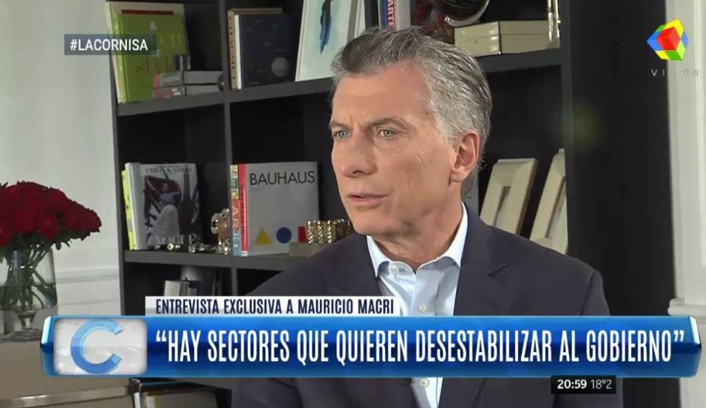 Al ser consultado sobre si cree que hay sectores que quieren desestabilizarlo, Macri respondió "Sí, claramente", e hizo hincapié en los sectores que "se sienten jaqueados". "Los cambios incomodan. Hay gente de buena fe a la que no le han cumplido, le han mentido y los cambios que generamos le incomodan", dijo el Presidente en referencia a los problemas que ciertas políticas económicas, como la suba de tarifas, trajeron a la gente.