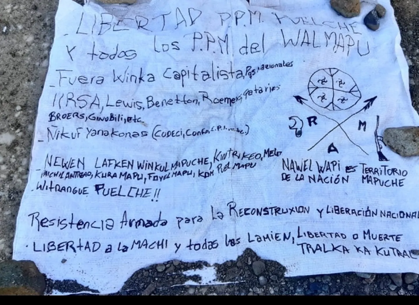 En el lugar la policía encontró un papel con la firma de la Restitencia Ancestral Mapuche (RAM) que exigía “libertad (para) los presos políticos mapuches puelches y todos los presos políticos mapuches del Walmapu (territorio histórico mapuche)”.
