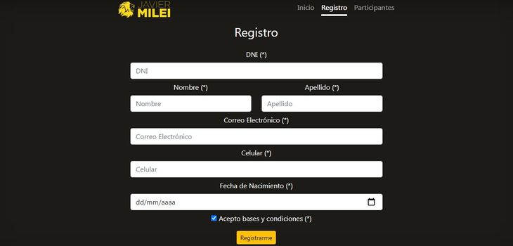 Para inscribirse, los interesados deben hacerlo a través de la pagina web del diputado “Mi palabra Javier Milei”.