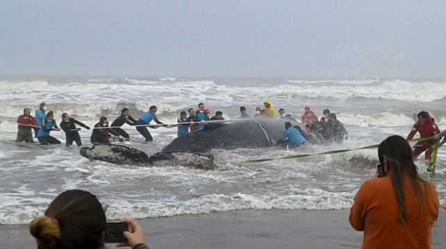 Tras dos días de trabajo, más de 30 rescatistas de la Fundación Mundo Marino, Municipio del Partido de la Costa, Prefectura, Defensa Civil, Guardavidas, Boy Scouts y comunidad de Mar del Tuyú lograron devolver a la ballena jorobada al mar.