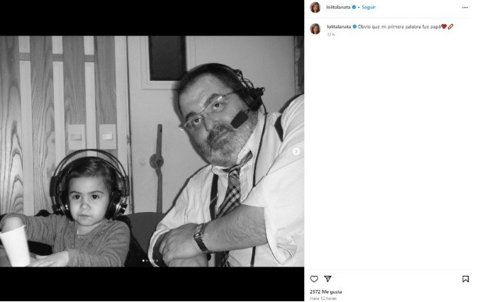 “Obvio que mi primera palabra fue papá”, escribió Lola, de 20 años, junto a una foto en blanco y negro. En la imagen, se la ve junto a Jorge Lanata en un estudio de radio. También se puede ver un video en el que el conductor de Periodismo para todos (El Trece, El Tres) le da algunos consejos para estar segura en su casa.