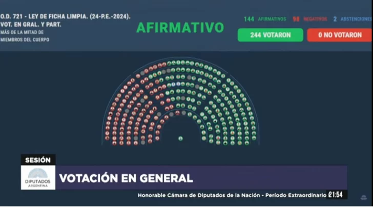En medio de denuncias de “proscripción” por parte del kirchnerismo, la Cámara de Diputados aprobó esta noche con media sanción al proyecto de Ficha Limpia, que en el caso hipotético de que se convierta en ley en el Senado impedirá que la ex presidenta Cristina Kirchner pueda ser candidata.