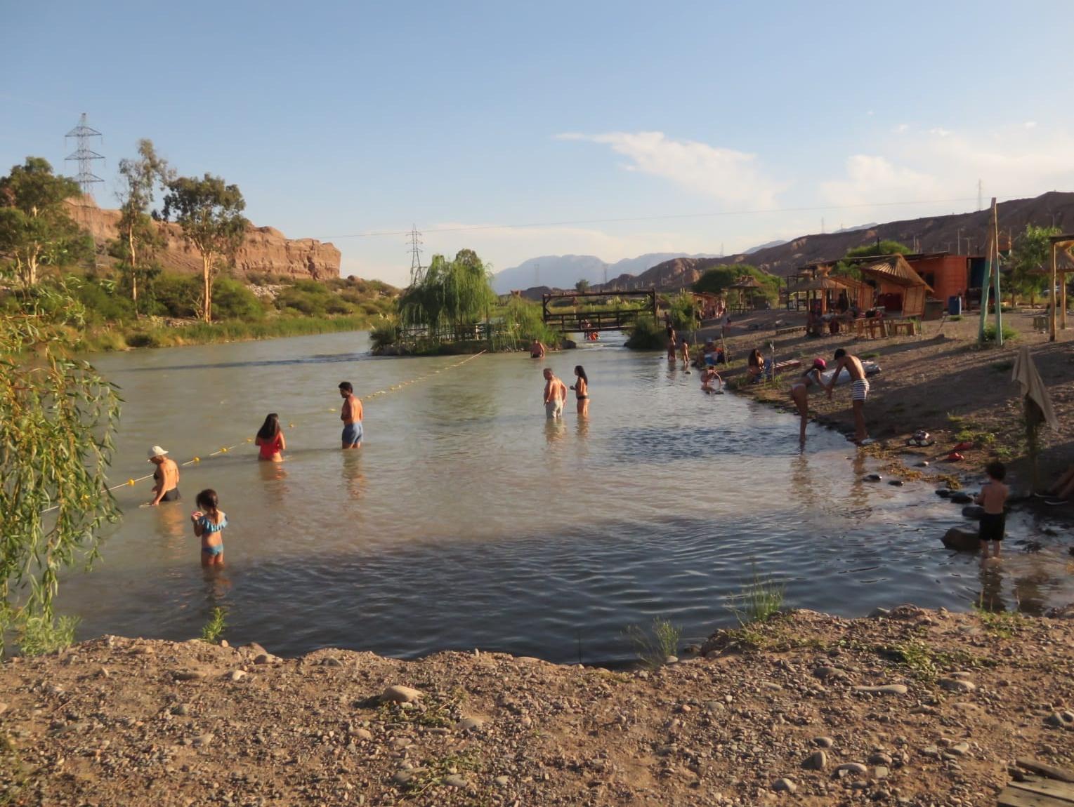 Todos sabemos que el nivel de agua los diques está muy por debajo de lo necesario y que por ello los clubes que poseen sus instalaciones junto a los lagos están teniendo serios inconvenientes para ofrecer al público condiciones aceptables en estos hermosos lugares. Por eso me ha llamado la atención como otros concesionarios se las han ingeniado para seguir ofreciendo servicios turísticos y de esparcimiento. Tal es el caso de los paradores que se han instalado aguas abajo del Dique de Ullum, donde además de ofrecer una infraestructura básica que incluye parrilleros, sombrillas, asientos y otras comodidades también ofrecen algunos atractivos como la posibilidad de navegar en canoa o kayac o practicar otros deportes acuáticos con todas las medias de seguridad (Ver foto). Pero además ofrecen a los visitantes pequeñas playas que han sido diseñadas al costado de la corriente principal de agua en las que se pueden bañar con total tranquilidad grandes y chicos.