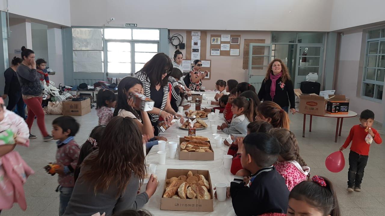 Las caritas tan inocentes como risueñas. La imagen de los niños expectantes y con la alegría de una edad que llena los corazones. Entre juegos y mucha alegría en familia fueron los protagonistas de una jornada en la que se los homenajeó, por parte del Rotary Club, de Rivadavia. Hasta allí llegaron rotarios llevando chocolate, juguetes, ropas y mercaderías para apoyar a niños y pobladores del lugar. El Rotary fue acompañado por alumnos y profesores del Colegio Dr. Bernardo Houssay quienes cumplieron con un proyecto socio comunitario que iniciaron en el mes de julio pasado. En conjunto participaron de actos que tuvieron lugar en la escuela centenaria "Rómulo Giufra”, de la localidad de "Las Chacras” y "República de Bolivia”, ubicada en el distrito La Planta. Allí Rotary Club de Rivadavia ofreció chocolate entregaron juguetes hubo asesoramiento de salud primaria y se cortó el cabello a varios niños y señoras de la zona. De esta manera se ha cumplido con parte de la misión que tiene la entidad que es ir en apoyo de la comunidad vulnerable en los distintos lugares de nuestra provincia.