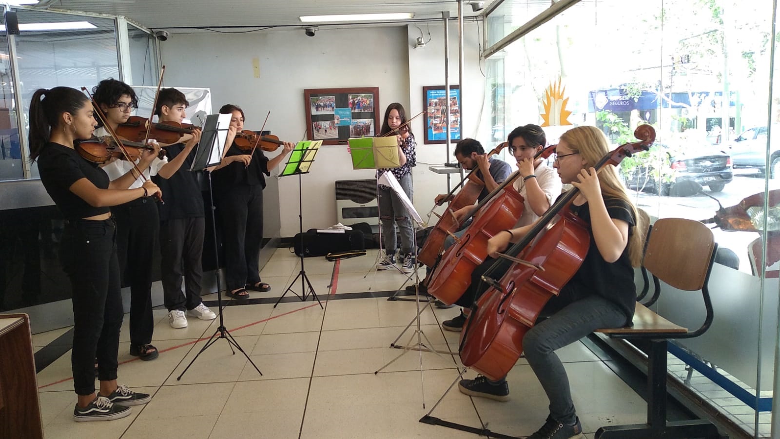 En vísperas de Navidad, la Orquesta Escuela Infantil, dirigida por Germán Yanes, se hizo presente en la Redacción de DIARIO DE CUYO, de calle Mendoza 380 Sur, para ofrecer un miniconcierto con motivo de esta significativa celebración. En la ocasión los chicos interpretaron con gran maestría el Vals Shostacovich y el tango El Choclo.