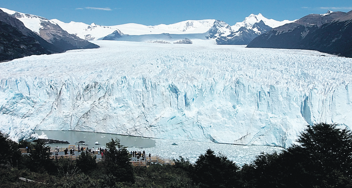 El glaciar Perito Moreno no deja de sorprendernos. Nace al igual que los otros doce glaciares patagónicos en el campo de hielo ubicado al Oeste de la provincia de Santa Cruz. Con 14 mil kilómetros cuadrados de extensión, esta enorme superficie denominada "Puente de hielo”, se desplomó en marzo del año pasado y fue un día domingo cuando el Parque Nacional estaba cerrado al público. La gran cantidad de agua llegó a varias localidad de El Calafate, cuyos habitantes fueron evacuados. El frente de avance del Glaciar tiene cinco kilómetros de ancho con una altura promedio de 74 metros por encima del lago argentino y tiene una profundidad total del hielo de 170 metros aproximadamente. Esta gruesa masa de hielo está en este momento como observamos en la fotografía. Un imperdible en Argentina muy recomendable de visitarlo. Es atractivo mundial a metros sobre el nivel del mar, al pie del Centro de Calafate y a orillas del lago argentino. Esta belleza natural evoca actualmente las hazañas del perito Francisco Pascasio Moreno, distante 80 kilómetros del Calafate, considerado el glaciar más grande de Argentina, e integra el Parque Nacional de Glaciares. Este Parque Nacional que está ubicado al Sudoeste de la provincia de Santa Cruz, tiene una superficie de 726 hectáreas y fue creado para preservar áreas de hielos continentales y glaciares del bosque andino – patagónico austral y muestras de las estepas patagónicas, considerada la octava maravilla del mundo. El sector de pasarelas en el lugar, permite admirar de frente el Glaciar, como así también apreciar de cerca la caída de bloques de hielo, que nuevamente podrá colapsar para el mes de marzo o a mediados de abril. No se puede creer que exista tremenda inmensidad de hielo que avance hacia los miradores. Un imperdible de Argentina muy recomendable, y que genera expectativas en todo el mundo en relación a su rompimiento.
