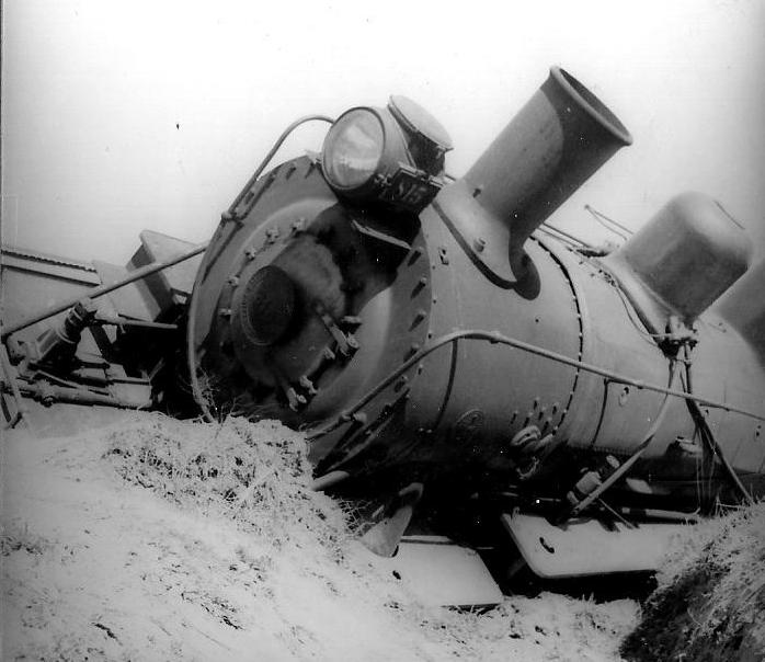 Ferrocarril General Manuel Belgrano, (tren de carga), cuando los trenes eran parte de un país que crecía día a día. Hasta que "brillantes e iluminados" políticos negociaron la desaparición de las vías y los trenes sin importarle las consecuencias. En San Juan, allá por el año 1942 se produjo un descarrilamiento, precisamente en el puente Blanco, de la localidad de Caucete. Este impresionante accidente, que no produjo víctimas, se dirigía a Córdoba y después a Buenos Aires, pasando por varias provincias y pueblos del país. Llevaba productos de San Juan y las esperanzas de nuestras riquezas para ser comercializadas. Esta noticia no tardó en llegar a la capital sanjuanina. De inmediato se activó la ayuda y los mecanismos en auxilio y socorro de esta tragedia. La máquina como los vagones muy accidentados y averiados fueron levantados por enormes grúas, las mismas que construyeron el Canal de Norte años más tarde. No era muy común este tipo de accidentes o descarrilamientos, no se supo por qué esta formación ferroviaria terminó de esta forma. Lo importante fue que no se produjeron víctimas, sólo hierros y maderas por el suelo. Se pudo recuperar y volverlo a las vías, después de un corto tiempo, ya que la vida debía continuar y el tránsito de tres también. Esta fotografía refleja el impacto de la máquina motor. Hoy, hasta los accidentes de trenes, a Dios gracia, no existen, pues ya no hay trenes ni vías y menos intención de ponerlos en funcionamiento. Uno se pregunta, ¿qué les pasó a los gobernantes, que irracionalmente, de un plumazo o espurios negociados, enterraron el progreso que llevaba el ferrocarril, de los pueblos de un país, matando nuestros derechos, de nuestros destinos, de tener nuestros trenes y sobre ellos recorrer el país hacia cualquier lado en "vías” de desarrollo y progreso?.