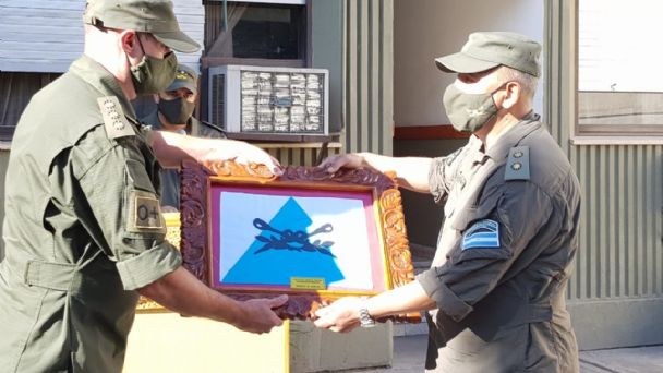 Por último, fue llevada a cabo la entrega de una distinción recordatoria por parte de las autoridades al Comandante Mayor Catalino Manuel Butof, jefe saliente de la Agrupación X "San Juan".