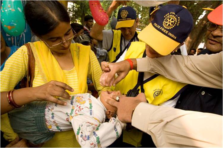 Rotary Internacional hace décadas estableció el "Día Mundial de la Lucha Contra la Poliomelitis", para conmemorar el nacimiento de Jonas Salk, investigador médico y virólogo estadounidense, que dirigió el primer equipo para desarrollar una vacuna contra esa enfermedad. El día fue un 24 de octubre, para iniciar mundialmente la lucha contra ese mal, que es una enfermedad muy contagiosa causada por el virus polio, que invade el sistema nervioso y puede causar parálisis en cuestión de horas. Según los científicos, este mal afecta sobre todo a los menores de cinco años y no tiene cura, pero es prevenible con vacunas, tarea que emprendió Rotary para salvar vidas, siendo la aplicación de la vacuna (oral e inactiva) lo que redujo dinámicamente la polio paralítica, transformada en uno de los programas de salud pública más exitosos. Debemos comprender la enfermedad que estamos a punto de erradicar siendo importante asociarla a experiencias de vida. Los casos han disminuido en más de un 99 por ciento desde 1988, cuando se calculó que había 350 mil casos en más de 125 países endémicos, en comparación con los 359 mil notificados en 2014. Actualmente la poliomielitis sigue siendo endémica solo en dos países (Afganistán y Pakistán).