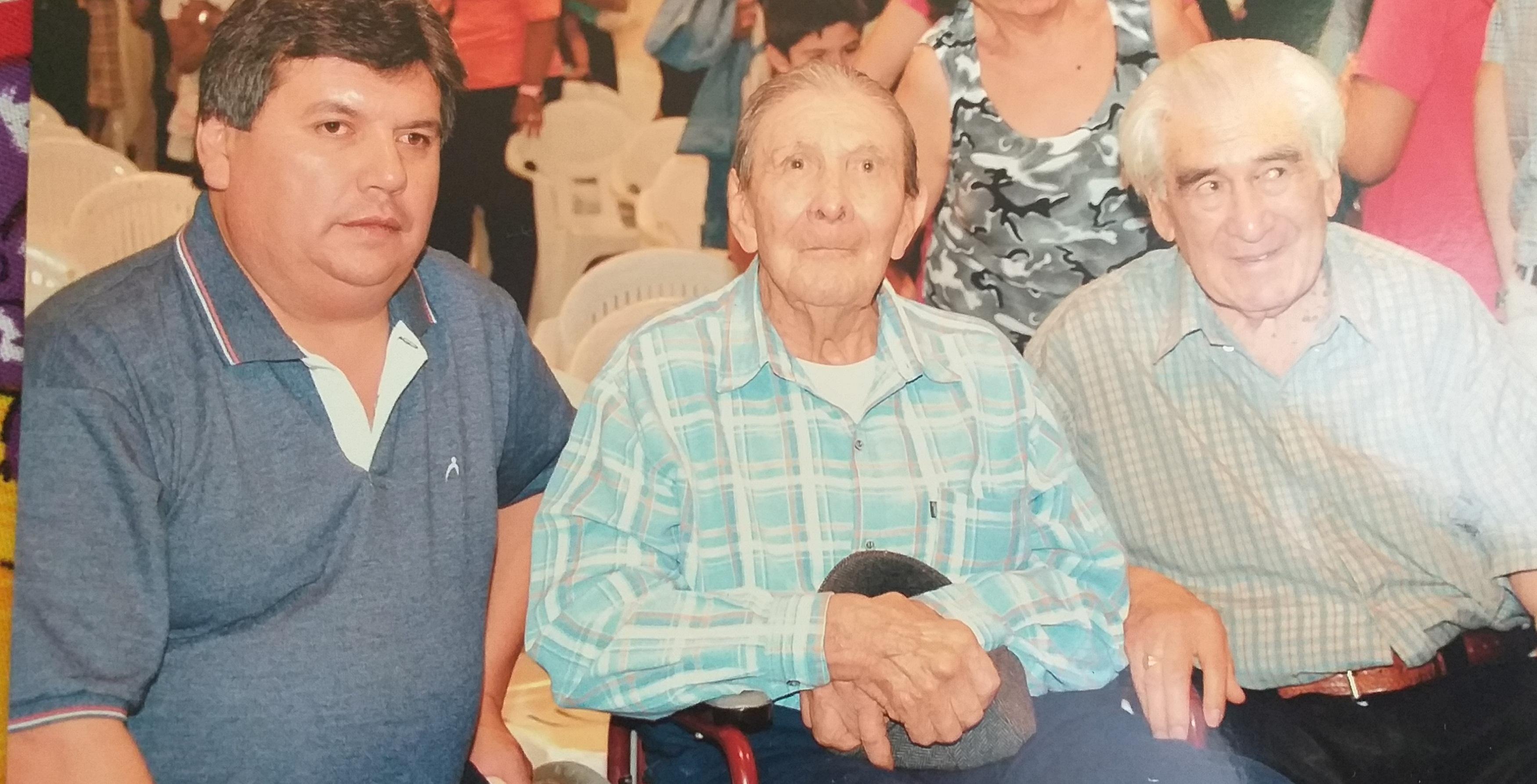 De izquierda a derecha Prof. Fabián Núñez, Benito V. Luna y Amado Araya (cantor dúo Hnos. Araya), en el homenaje realizado en 2012 por la Dirección de Cultura de Jáchal.