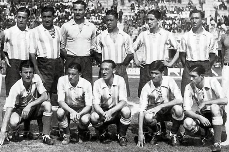 José Eduardo Nehín, ex futbolista de Sportivo Desamparados de San Juan en la Selección Argentina de 1934. La formación argentina en el partido con Suecia en Italia; arriba, Pedevilla, Bellis, Freschi, Nehin, Urbieta Sosa y Arcadio López; abajo, Rua, Wilde, Devincenzi, Galateo e Irañeta. (Fuente: Diario La Nación).