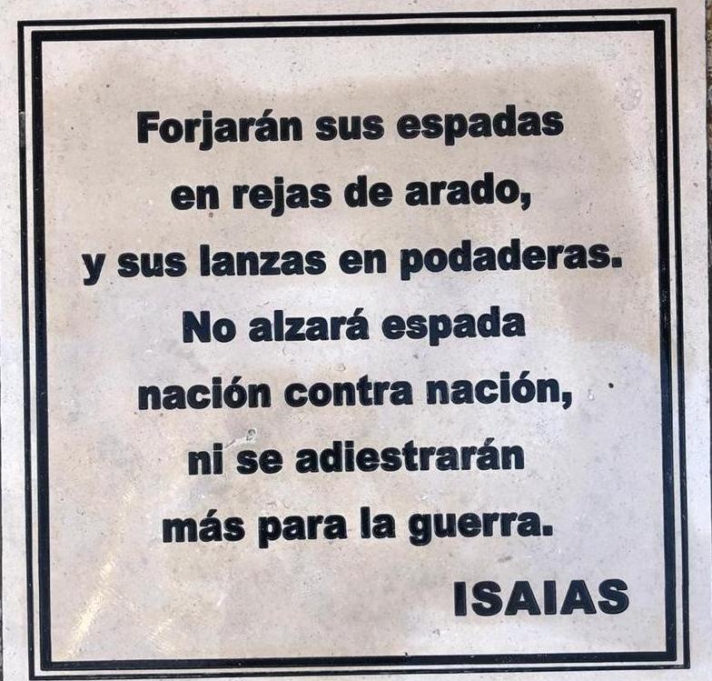 Ubicarnos frente a la Catedral nos llevará a la posibilidad de fijar la vista en un mensaje fundamental: "Forjarán sus espadas en rejas de arado, y sus lanzas en podaderas. No alzará espada nación contra nación, ni se adiestrarán más para la guerra (Isaías).