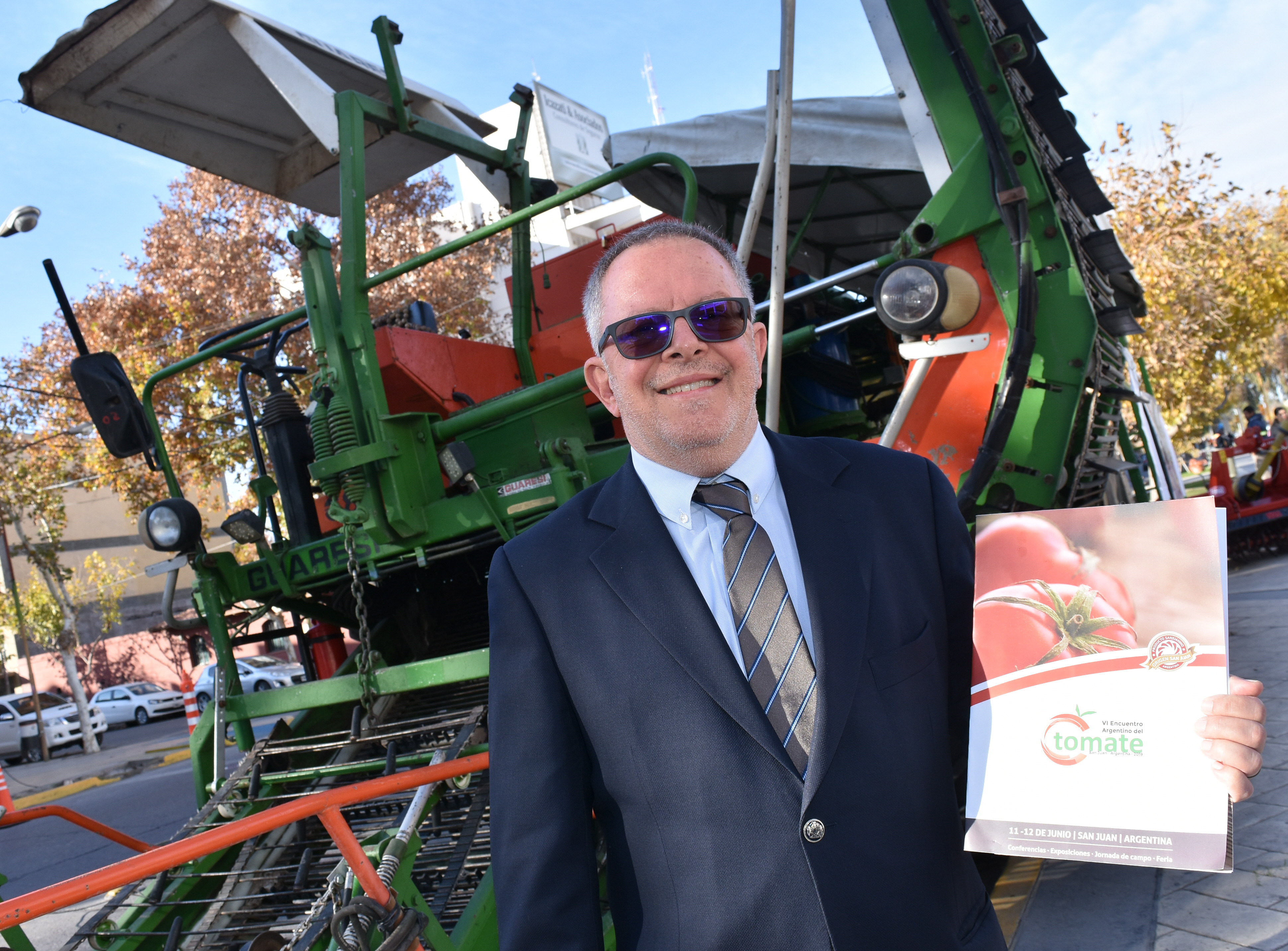 Nomikos fue uno de los participantes ayer en la apertura del VI Encuentro Argentino del Tomate que contó con la participación del gobernador Sergio Uñac, del ministro de la Producción, Andrés Díaz Cano, y del secretario de Agricultura, Ariel Lucero, entre otras autoridades.