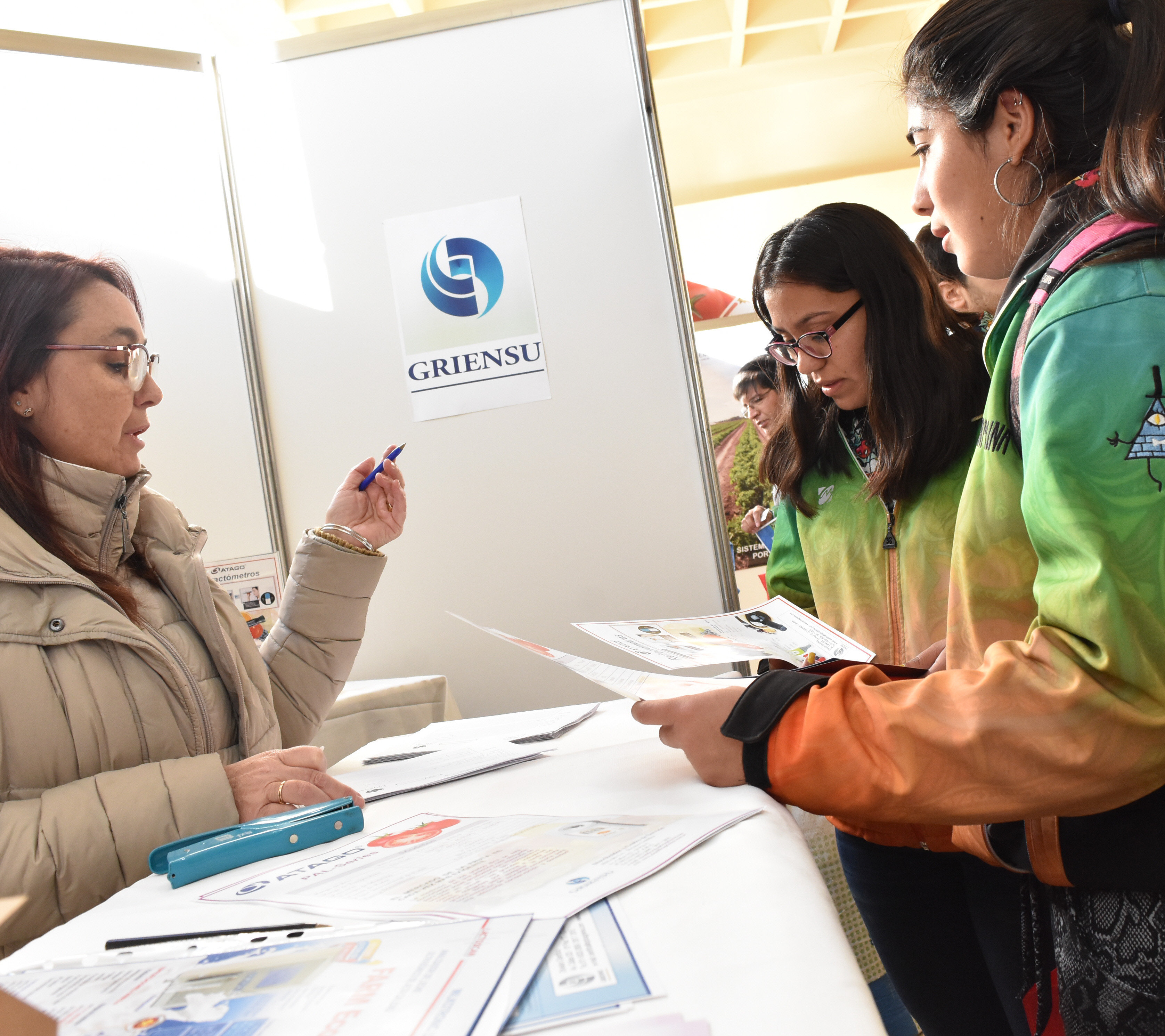 Se distinguen de lejos por sus camperas multicolores con inscripciones de los establecimientos a los que pertenecen y hasta de las especialidades que cursan. Y son los primeros que piden material ilustrativo de las empresas que participan en la muestra.
