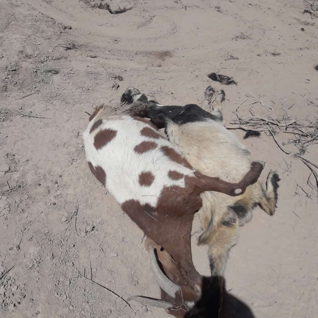 La mayoría cría ganado caprino y los menos tienen vacas. Pero la falta de agua ha provocado que los animales se desplomen y mueran de la sed.