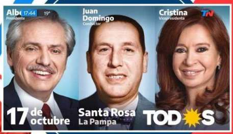 La señal de ajuste que sirve para comprobar que llega imagen y sonido desde un móvil hasta el canal de TV, en esa ocasión era la imagen de la convoatoria del acto: los Fernández y Perón. En el pasado se empleaban unas barras de colores. En tiempos de transmisiones a múltiples plataformas (el video salía también en Facebook y YouTube), el Frente de Todos eligió usar la cara de los dos candidatos junto al fundador del Partido Justicialista.