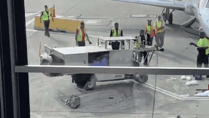 La extraña escena, que fue capturada en video y subida a Twitter, muestra al vehículo no tripulado girando salvajemente mientras su carga, incluidas las bebidas enlatadas, salen volando.