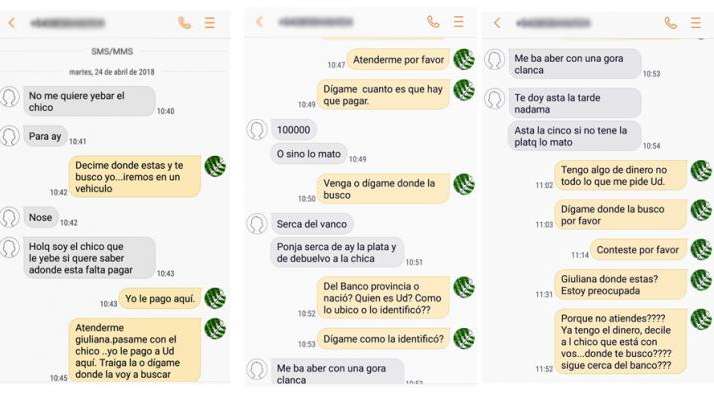 Dichos mensajes provenían del teléfono de la adolescente y en ellos se afirmaba que la menor había sido secuestrada, por lo que exigían el pago de $100 mil para liberarla. Tras este primer contacto siguieron las órdenes de los “captores” que daban indicaciones de cómo debía hacerse la entrega del dinero.