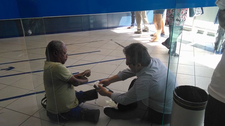 El gerente de un banco en Brasil dio muestra de una admirable acción, en tiempos donde el dinero parece estar por encima de los valores. Una mujer que estaba en la fila de un banco de Río de Janeiro, esperando ser atendida observó una situación le llamó la atención al punto de fotografiar inmediatamente la escena.