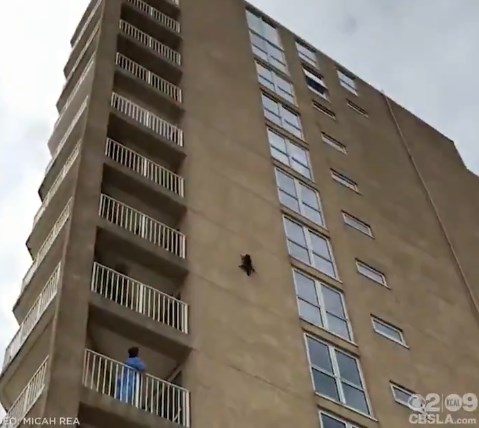 WATCH: A raccoon climbs nine stories up the side of a building, then plummets to the ground!