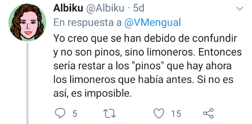 “Yo creo que se han debido de confundir y no son pinos, sino limoneros. Entonces sería restar a los “pinos” que hay ahora los limoneros que había antes. Si no es así, es imposible”, escribió una usuaria. Mientras que otro hizo una serie de preguntas: “¿Hay alguna relación entre el número de pinos canarios y los limoneros del parque? ¿El parque está en la misma localidad del pino canario? ¿A cuánta distancia? ¿Los pinos canarios son autóctonos o han sido plantados para la reforestación?”.