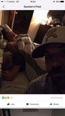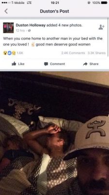 Pero, ¿qué hizo ante tan sorpresiva escena? Aunque con el corazón destrozado, Duston se tomó una selfie con los amantes de fondo y la subió a las redes. “Cuando llegás a casa y hay otro hombre en tu cama con la mujer que amás, buenos hombres merecen buenas mujeres”, escribió junto a la imagen.