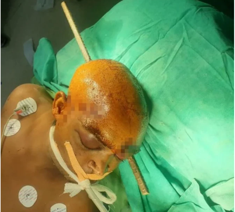 La mitad de su cráneo tuvo que abrirse para que el médico pudiera liberar la varilla de su cerebro durante una cirugía que demandó un tiempo de cuatro horas por parte del neurocirujano principal, el Dr. Abhinav Gupta. Increíblemente, según contó el médico, el joven no sufrió daños adicionales en su cerebro, pero el lado izquierdo de su cuerpo quedó paralizado. Compañeros trabajadores de la construcción habían cortado la mayor parte de la varilla de 6 metros antes de llevar a la joven al hospital.