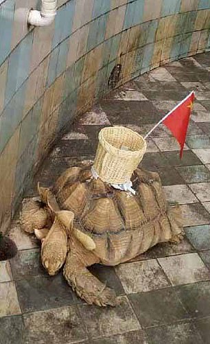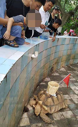 Un zoológico chino es foco de polémicas después de viralizarse una foto que muestra a una de sus tortugas con una canasta pegada a su caparazón, con miras a recolectar contribuciones en dinero de los visitantes.