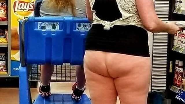 La fotografía de una mujer comprando en un supermercado se hizo viral por una ilusión óptica. La mujer lleva puestos unos leggins color rosa pálido y parece que va desnuda de cintura para abajo.
