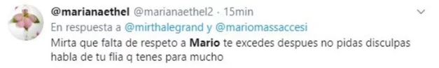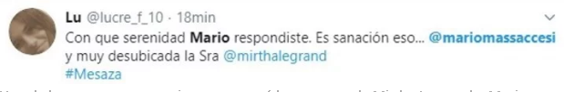 "Alguien me explica por qué la señora no es un poco más sutil para hablar…", "Mirtha qué falta de respeto a Mario te excedés, después no pidas disculpas…", "Admiro la entereza de Mario Massaccesi. Y si no quiere contar, bien por él".