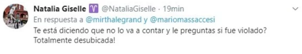 "Con qué serenidad Mario respondiste. Es sanación eso… y muy desubicada la señora Mirtha Legrand", "¡Otra vez Mirtha! Esta vez me hiciste enojar mucho. Mario Massaccesi todo un señor", "Te está diciendo que no lo va a contar ¿y le preguntás si fue violado? ¡Totalmente desubicada!", fueron algunos de los mensajes.