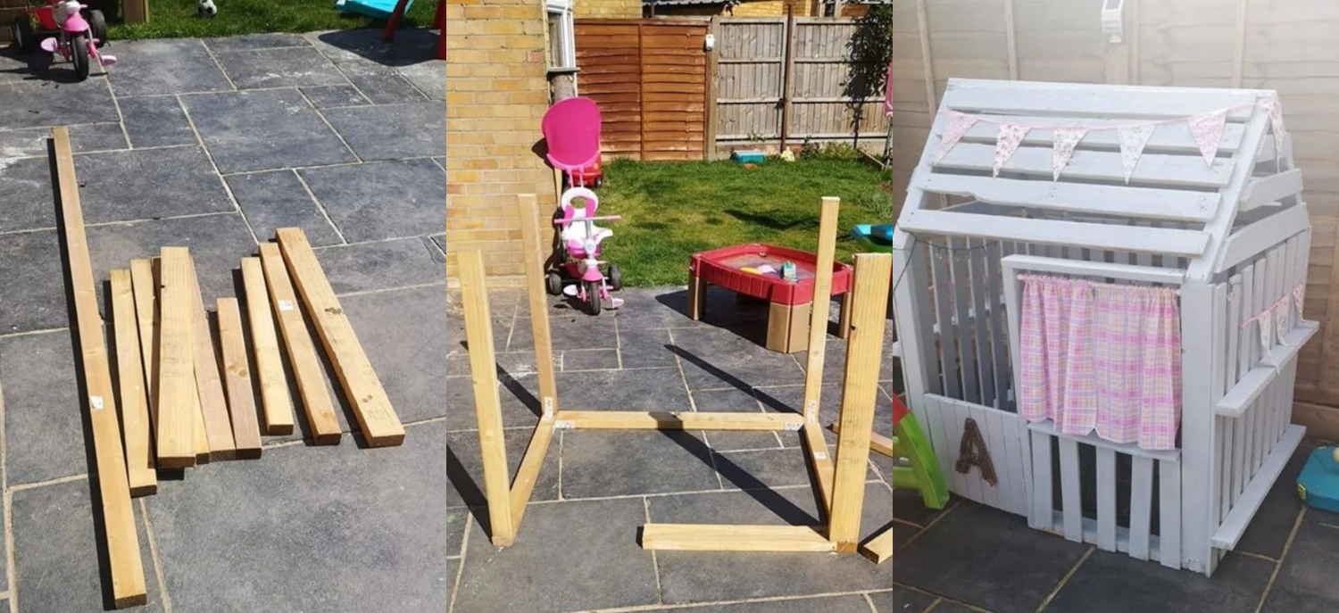 La mujer publicó algunas fotos del proceso: de un par de maderas viejas a una casa de juegos increíble sólo reciclando materiales.