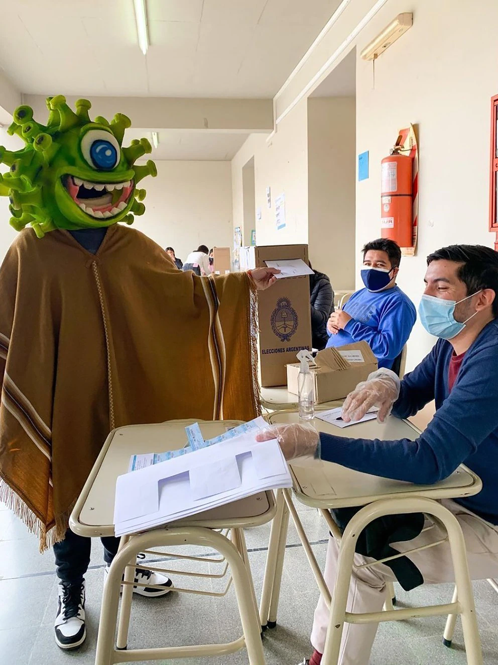 Sucedió este domingo en la provincia de Jujuy. El influencer conocido como “El bicho jujeño” concurrió a las urnas disfrazado con una máscara de coronavirus y un poncho color marrón. A diferencia del hombre que se lookeó de carpincho en la localidad bonaerense de Tigre, este sí pudo emitir su voto, pero por el momento se desconoce el establecimiento donde lo realizó.