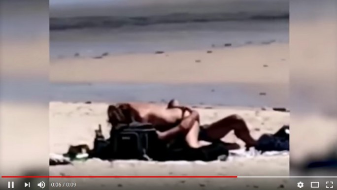 En las imágenes de YouTube, se ve cómo una mujer, de bikini negro, está encima de un hombre mientras protagonizan una intensa escena de sexo. La pareja está vestida con sus trajes de baño, pero eso no impide que ellos se diviertan alrededor de bolsas y botellas.
