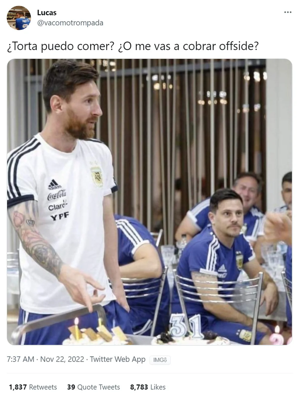 Además, hubo memes desde temprano, porque hubo que madrugar para ver el partido, pero muchos lo hicieron con alegría, al tratarse de un partido de la Argentina.