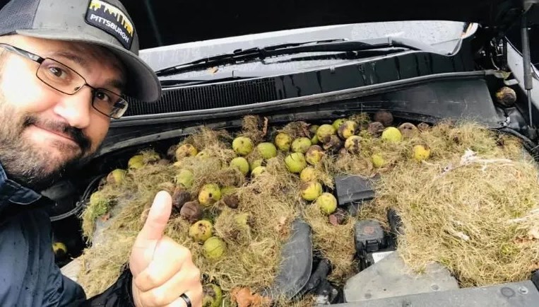 Holly y Chris Persic, una pareja yanqui del estado de Pensilvania, dejaron su vehículo estacionado fuera de su garaje y las ardillas de alrededor de su casa le llenaron el auto de nueces.