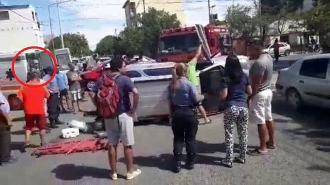 Un auto y una camioneta chocaron y tres personas debieron ser rescatadas por los bomberos con heridas leves. Los testigos captaron varias imágenes de ese momento y en una ellas se ve una silueta rara que se encuentra parada en la puerta de la ambulancia mirando la escena, pero no se puede determinar con detalle de qué se trata.