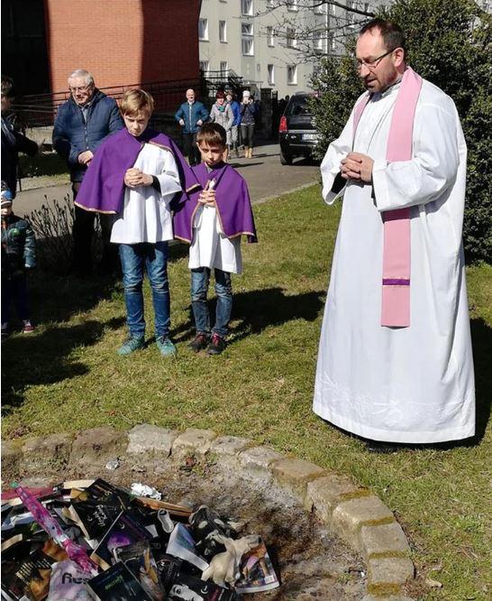 Jan Kucharski, cura de la parroquia en donde se realizó el evento, detalló que la idea no era quemar libros, "sino objetos asociados a la magia y el ocultismo". En su defensa, explicó que también se deshicieron de amuletos, talismanes y máscaras. "Es tiempo de poner orden", recalcó.