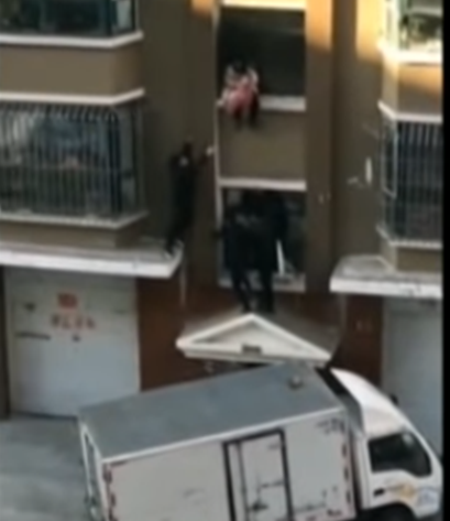 Li Gang estaba trabajando en la provincia de Heilongjiang cuando vio a una mujer atrapada en la ventana de un edificio.