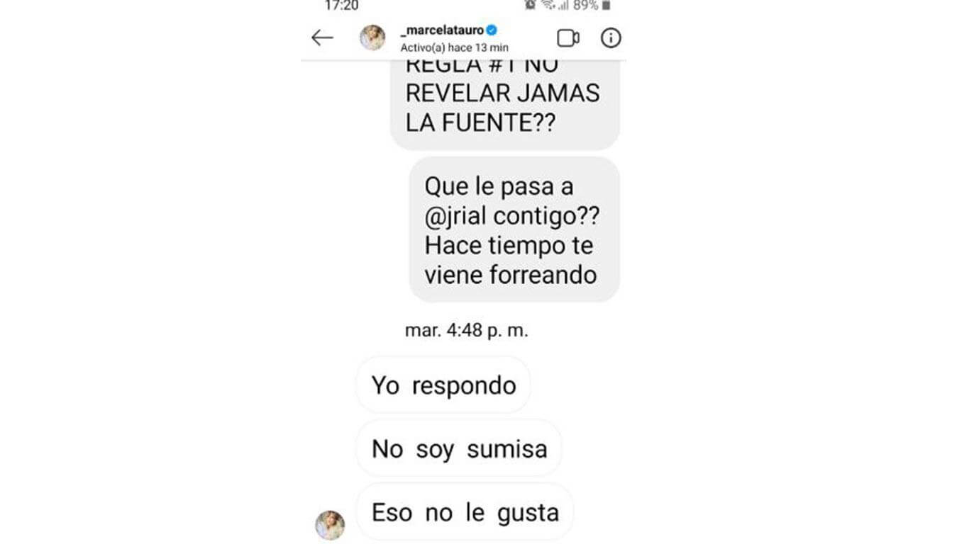 "¿Quién te manda eso Marcela? Tenemos que dar los nombres", le solicitó. Frente al pedido, la periodista respondió: "Ahí te lo mandé para que lo veas. Yo no voy a dar el nombre de mi informante. Perdón Jorge, pero no. Sabés que hasta ahora en lo que dije no fallé, la información que te traje fue buena".