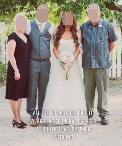 A principios de esta semana, la mujer desafió a otros usuarios de TikTok a compartir cómo saben que a la familia de su esposo no le agradan. Y para empezar el juego, ella misma contó su experiencia: “Todas las mujeres decidieron usar vestidos funerarios negros para nuestra calurosa boda de finales de verano”.