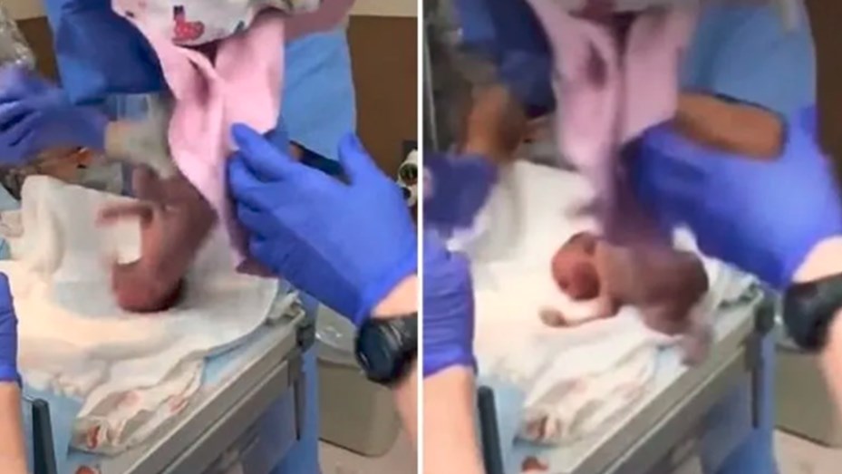 En un video tomado por el propio padre de la menor, se puede observar como otro de los doctores evita que el bebé se caiga al piso. Todo el episodio dura unos segundos.